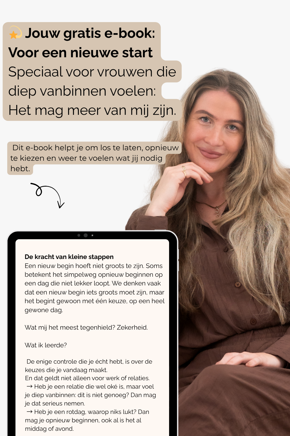 Jouw gratis e-book: Voor een nieuwe start Speciaal voor vrouwen die diep vanbinnen voelen: Het mag meer van mij zijn.